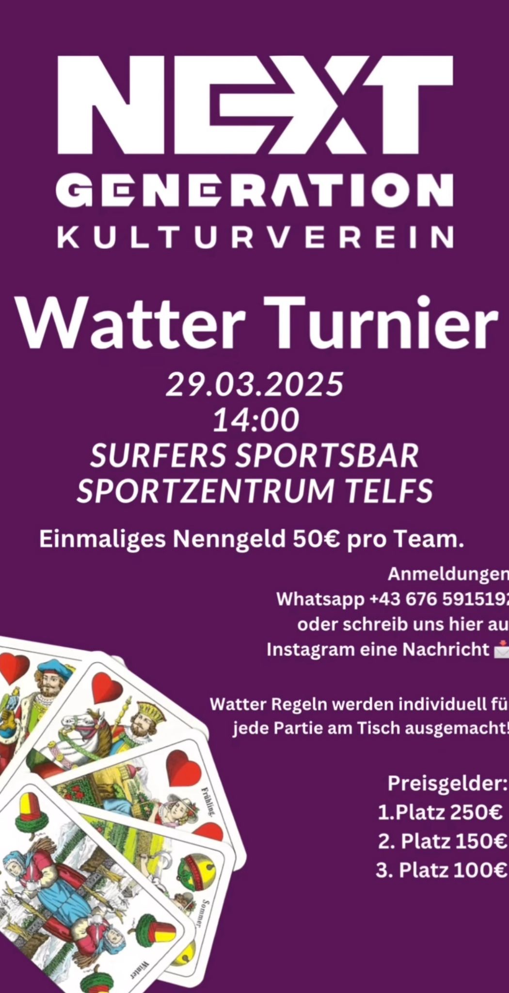 März 29, 2025 @ 2:00 p.m. - 10:30 p.m. Watter Turnier Surfers Sports Bar Franz-Rimml-Straße 4, Telfs Free