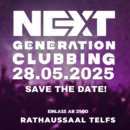 Mai 28, 2025 @ 12:00 a.m. NEXT GENERATION CLUBBING 3.0 Rathaus Saal Telfs Franz-Rimml-Straße 4, Telfs